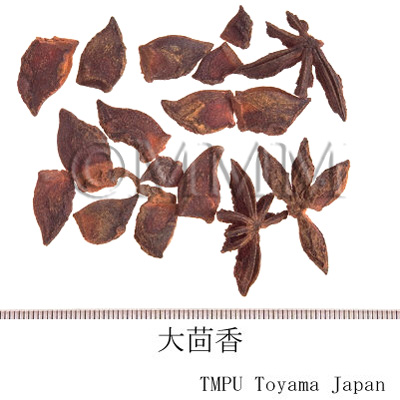 - 日本産の同属植物 Ilicium religiosum Sieb. et Zucc. シキミの果実は大茴香に酷似しているが,有毒成分 anisatinを含有するので混用してはならない.