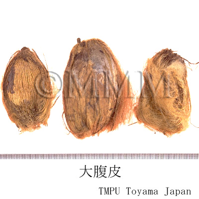 | 備考 | 「大腹皮」は「檳榔子」(ビンロウヤシの種子)を包んでいる繊維性の果肉である.大腹皮の基源としてビンロウヤシ以外のAreca属の果実の果皮が出まわっている可能性がある. | |||||