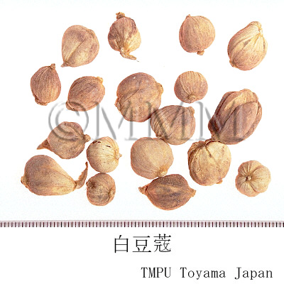 | 備考 | - インドネシア産の「ジャワ白豆蔲」は Amomum compactum Soland. ex Maton の成熟果実.広西省に産する「土白豆蔲」は Alpinia sp. の果実である. - 白豆蔲の使用時には種子を用いるが,果皮(豆蔲殻),花(豆蔲花)も同様に用いられる. | |||||