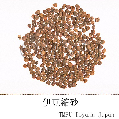| 備考 | 『中華人民共和国薬典』では「砂仁」として Amomum villosum Lour.(陽春砂),A. villosum Lour. var. xanthioides T.L. Wu et Senjen (= A. xanthioides Wall.),A. longiligulare T.L. Wu の成熟果実を規定している. 『日本薬局方』第16改正まではシュクシャを Amomum xanthioides Wallich の種子の塊と規定していた.第17改正からは Amomum villosum Lour. var. xanthioides T. L. Wu & S. J. Chen, Amomum villosum Lour. var. villosum or Amomum longiligulare T. L. Wu. の種子の塊としている. 日本産伊豆縮砂:白手と黒手があり,黒手種は ハナミョウガ Alpinia japonica (Thunb. ex Murray) Miq.または(アオノクマタケラン A. intermedia Gagnep.)の仮種皮を除いた種子.白手種は ゲットウ A. speciosa (J.C. Wendl.) K. Schum. の種子で仮種皮を伴い,品質は良くない. 台湾産の砂仁はゲットウの種子. | ||||||