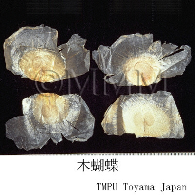| 備考 | 別名を千層紙,破布子,雲故子,白玉紙などと称する.漢薬市場でときに補骨脂(破故紙)と混同する場合があるが,これは別名の破布子と破故紙の類似から誤ったもので,両者は形態的にも,原植物も全く異なるものてある.樹皮は「木胡蝶樹皮」と称し,肝炎,膀胱炎,咽喉腫痛などに用いる. | |||||