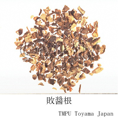 | 備考 | 本草正条品はオミナエシ科の P. villosa オトコエシである.現在中国市場の「敗醤草」は主に2種あり,北方地区ではキク科の S. brachyotus ハチジョウナ,南方地区ではアブラナ科の T. arvense グンバイナズナが用いられる.日本産の「敗醤根」はオミナエシ科の P. villosa オトコエシの根である.原植物により薬効が異なるので注意が必要. | |||||