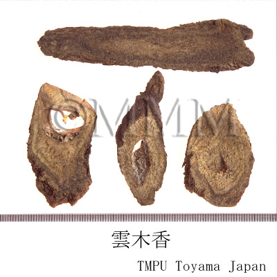 | 備考 | キク科/Compositae の Saussurea lappa Clarke (= Aucklandia lappa) の根に由来する木香が正品で,古代には「青木香」と称した.現在の青木香は,ウマノスズクサ科/Aristolochiaceae の ウマノスズクサ Aristolochia debilis Sieb. et Zucc. および マルバウマノスズクサ Aristolochia contorta Bunge の根である. 川木香はキク科の Vladimiria souliei (Franch.) Ling の根で,通常根頭部を焼いて調製する.かつてこれを Inula racemosa Hook.f.(蔵木香)に充てたことがあったが誤りである. 土木香はキク科のオオグルマ Inula helenium L. の根である.その他中国市場の「越西木香」は Vladimiria denticulata Ling の根である. | ||||||