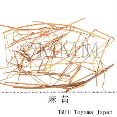 | 薬理作用 | 鎮咳,抗アレルギー作用(水,エタノールエキス),交感神経興奮(血圧上昇,気管支拡張,散瞳,発汗),中枢性鎮咳作用(ephedrine),抗炎症作用(pseudoephedrine). | |||||