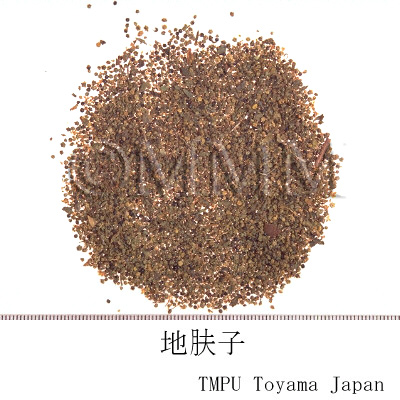 | 備考 | 地膚子の正品はアカザ科 のホウキギ Kochia scoparia の成熟果実であると考えられるが,市場にはこの他に同科の シロアカザ Chenopodium album L., コアカザ C. ficifolium Smith, ケアリタソウ C. ambrosioides L. の果実が流通していた (B1).さらに香港市場などにはシソ科の メハジキ Leonurus japonicus Houttuyn 及び ホソバメハジキ L. sibiricus L. の果実からなる「地膚子」が見られた (B2).メハジキ及びホソバメハジキの果実は「茺蔚子」の基源であり,共に眼病に用いられることがある以外,薬効は全く異なる.Chenopodium 属及び Leonurus 属由来の「地膚子」の使用は不適当である. | ||||||