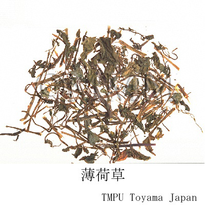 | 臨床応用 | 芳香性健胃,駆風薬,頭痛,目まい,咽頭痛,瘰癧,心腹脹満などに応用する.多くはl-menthol(防腐,局所麻酔),ハッカ油,ハッカ水などの製造原料とする. | ||||||