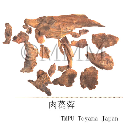 別名を 「大芸」 といい,春季採集したものを砂中に半分埋め,晒干したものを 「甜大芸(淡大芸)」 と称し,秋季採集したものは水分が多く乾燥し難いので塩湖中に1~3年漬けておき,これを 「塩大芸」 と称する.薬用にする際には塩分を洗い去る.現在わが国に輸入される肉蓯蓉は 「淡大芸」 の方である.