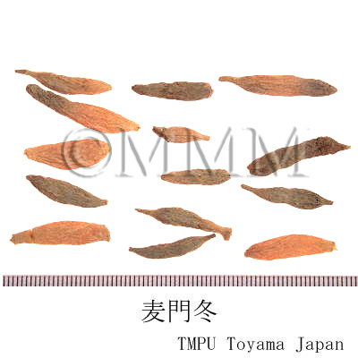 | 備考 | 『日本薬局方』,『中華人民共和国薬典』ともに原植物として,O. japonicus が規定される.その他中国産には O. ohwii,セッコウジャノヒゲ O. chekiangensis Kimura et Migo(浙江省の栽培品でスレンダーな根茎を持つことから O. japonicus と区別すべきであるという説がある.)が出廻る.韓国産はヤブラン属のコヤブラン Liriope spicata Lour. 及びヤブラン L. platyphylla Wang et Tang の肥大根である.このものは中国では「土麦門」と称しているが,品質はよくない. | ||||||