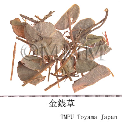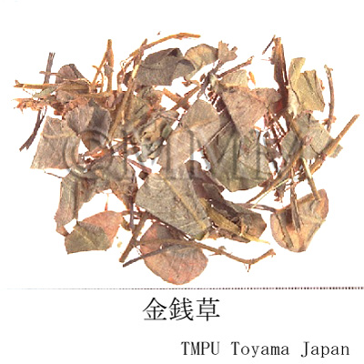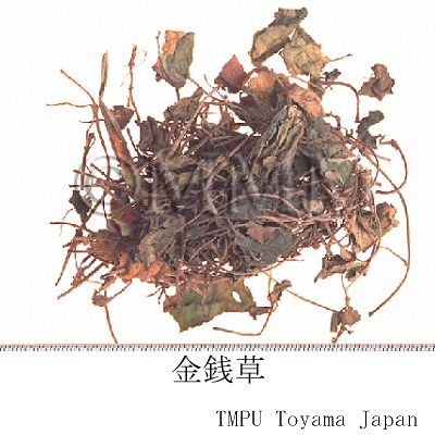 | 備考 | 現在日本で入手できる商品は香港市場品である. 中国南部諸省で胆石症や尿石症の特効薬と称して市販されている.その他,タデ科/Polygonaceae の ミズヒキ Polygonum filiforme Thunb. = P. virginianum L. var. filiforme (Thunb.) Merr.; Tovara filiformis (Thunb.) Nakai; T. virginiana (L.) Rafin. var. filiformis (Thunb.) Steward; Sunania filiformis (Thunb.) Rafin. の全草,サクラソウ科/Primulaceae の Lysimachia christinae Hance. の全草など多種の植物が金銭草と称される. | |||||