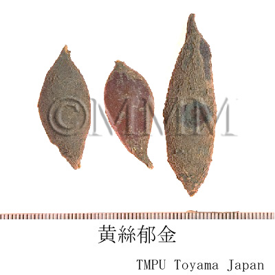 | 備考 | 中国では Curcuma 属植物の地下部を根茎と塊根とに分け,別名で呼ぶ.Curcuma longa Linn. の根茎は「姜黄」で塊根は「黄絲郁金」, C. wenyujin Y. H. Chen et C. Ling の根茎は縦切片にしたものを「片姜黄」,丸ごとのままを「温莪朮」と称し,塊根は「温郁金」という.C. phaeocaulis Val. の根茎は「蓬莪朮」で塊根は「緑絲郁金」,C. kwangsiensis S. G. Lee et C. F. Liang の根茎は「広西莪朮」で塊根は「桂郁金」と称す.『中華人民共和国薬典』によれば, 「姜黄, Curcumae Longae Rhizoma」は性味が辛苦・温で,破血行気,通経止痛の効があり,また「片姜黄, Wenyujin Rhizoma Concisum」も同様な性味と薬効が記載されている.一方,中国の「郁金, Curcumae Radix」には黄絲郁金,温郁金,緑絲郁金,桂郁金が含まれ,性味が辛苦・寒で,行気化瘀,清心解鬱,利胆退黄の効があり,経閉痛経,胸腹脹痛,刺痛,熱病神昏,癲癇発狂,黄疸尿赤に用いると記載されている.一方,日本国内では中国産生薬を用いているのだが, C. longa の根茎を「鬱金, Curcumae Longae Rhizoma」,塊根を「玉金(川玉金),Curcumae Longae Radix」と呼ぶ.したがって,中国でいう「姜黄」を日本では「鬱金」と称しているわけである.中国の「郁金」には4種の原植物があるので,日本でいう「玉金」も原植物は4種類ある可能性がある.沖縄などではウコン C. longa とハルウコン C. aromatica Salisb. が栽培されている.各々の根茎は健康食品としても需要がある.鬱金はカレー粉の原料,食品の着色料,指示薬としてクルクマ紙,クルクマチンキとしても用いる. | |||||