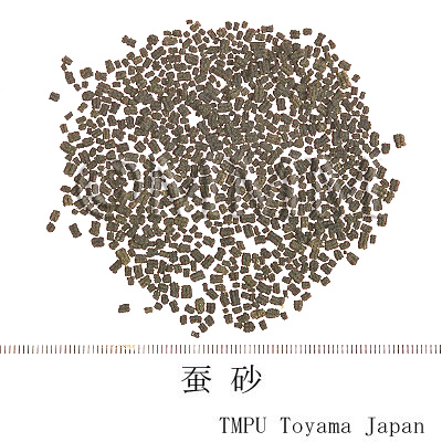 | 備考 | 蚕沙は灰黒色の短円柱形の顆粒状で,長さ2~5㎜,直径1.5~3㎜,表面は粗糙で6條の縦溝がある.質は堅いが脆く,容易に手で砕ける.微かに青草臭がある. | |||||