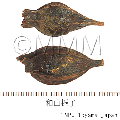 | 選品 | 山梔子は丸手のもの,水梔子は長手のもの.一般に丸手の充実した,紅色のものが上品である(TN). | |||||