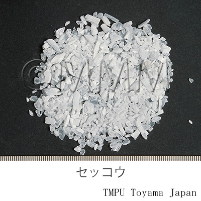 原植物名含水硫酸カルシウム(軟)CaSO4・2H2O,無水硫酸カルシウム(硬), CaSO4・1/2 H2O(焼石膏) / Natural hydrous calcium sulfate, 石膏