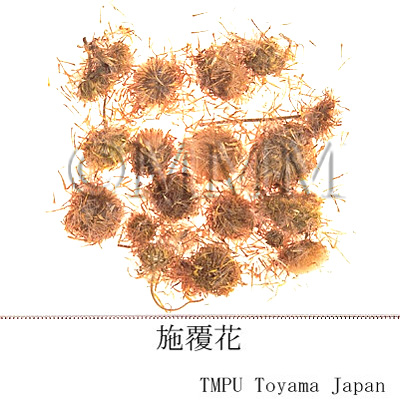 | 備考 | 中国では Inula chrysantha Diels. (広東, 広西, 湖南, 江西),I. serrata Bur., I. serrata Bur. var. hupehensis Ling (湖北, 貴州),I. salicina L. (北方地区) などの頭花が用いられる.かつて日本産 (奈良県) 旋覆花が大坂市場に出まわったことがあったが,これは ノコンギク Aster ageratoides Turcz. subsp. ovatus (Fr. et Sav.) Kitam. の小頭花であった.また韓国産旋覆花の中には サワオグルマ Senecio pierotii Miq. = S. campestris DC. pro parte の小頭花があり,ともに偽品である. | |||||