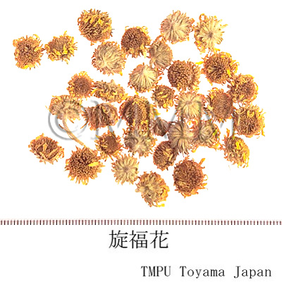 備考中国では Inula chrysantha Diels. (広東, 広西, 湖南, 江西),I. serrata Bur., I. serrata Bur. var. hupehensis Ling (湖北, 貴州),I. salicina L. (北方地区) などの頭花が用いられる.かつて日本産 (奈良県) 旋覆花が大坂市場に出まわったことがあったが,これは ノコンギク Aster ageratoides Turcz. subsp. ovatus (Fr. et Sav.) Kitam. の小頭花であった.また韓国産旋覆花の中には サワオグルマ Senecio pierotii Miq. = S. campestris DC. pro parte の小頭花があり,ともに偽品である.