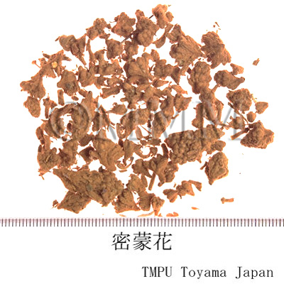 | 備考 | 中国市場では密蒙花の他,老密蒙花,老蒙花と称される.わが国に輸入される密蒙花は上記正條品であるが,ときに多量の芫花 - ジンチョウゲ科/Thymelaeaceaeの フジモドキ Daphne genkwa Sieb. et Zucc. の花蕾] の混入 (約17%)が認められる.中国湖北省黄崗,四川省雲陽等に産する密蒙花は,ジンチョウゲ科/Thymelaeaceae の ミツマタ Edgeworthia chrysantha Lindl. の花蕾であって,通常「新蒙花」または「蒙花珠」と称している.中国市場にはこのものも多く出まわっている. | |||||