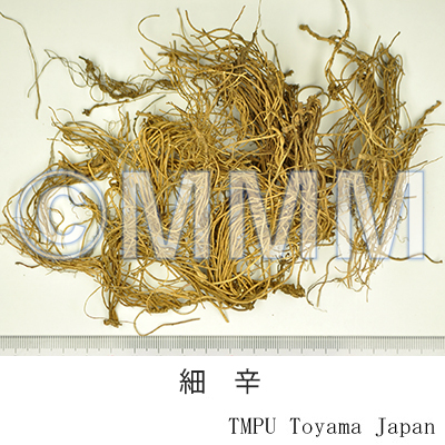 備考- 中国産(Asiasarum heterotropoides var. mandshuricum ケイリンサイシン等)及び朝鮮半島産(A. heterotropoides var. seoulense F. Maekawa ウスゲサイシン)の細辛は根つきの全草からなる.
