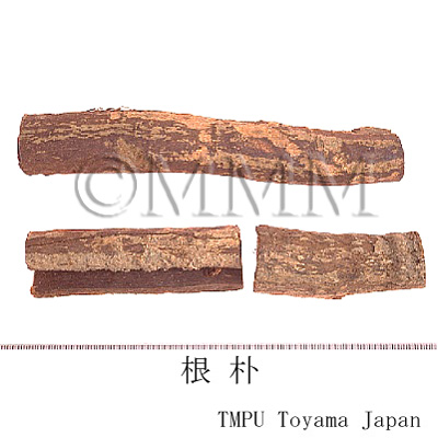 | 備考 | 『日本薬局方』では3種の樹皮が規定され,magnolol を 0.8%以上含むこととされる.『中華人民共和国薬典』では厚朴(Magnoliae Officinalis Cortex)として M. officinalis の樹皮(川朴,湖北厚朴などと称す)と M. officinalis var. biloba(温朴,温州厚朴)の樹皮が規定される.樹皮(幹皮,枝皮)の他,根皮も用いられる.日本市場では中国産の厚朴を唐厚朴と総称する.韓国産はホオノキの樹皮以外に,クスノキ科のタブノキ Machilus thunbergii Sieb. et Zucc. の樹皮を「厚朴(薄朴)」と称し代用にすることがあるが,気味が全く異なる. | |||||