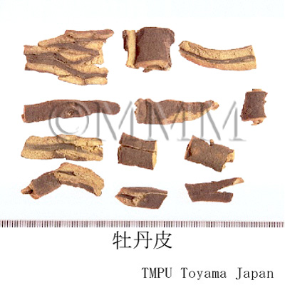 | 一般生薬名 | 牡丹皮, Mudanpi, Moutan Cortex (JP18, CP2020), Moutan Bark (JP18), Tree Peony Bark (CP2020) | |||||