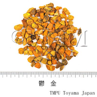 備考中国では Curcuma 属植物の地下部を根茎と塊根とに分け,別名で呼ぶ.Curcuma longa Linn. の根茎は「姜黄」で塊根は「黄絲郁金」, C. wenyujin Y. H. Chen et C. Ling の根茎は縦切片にしたものを「片姜黄」,丸ごとのままを「温莪朮」と称し,塊根は「温郁金」という.C. phaeocaulis Val. の根茎は「蓬莪朮」で塊根は「緑絲郁金」,C. kwangsiensis S. G. Lee et C. F. Liang の根茎は「広西莪朮」で塊根は「桂郁金」と称す.『中華人民共和国薬典』によれば, 「姜黄, Curcumae Longae Rhizoma」は性味が辛苦・温で,破血行気,通経止痛の効があり,また「片姜黄, Wenyujin Rhizoma Concisum」も同様な性味と薬効が記載されている.一方,中国の「郁金, Curcumae Radix」には黄絲郁金,温郁金,緑絲郁金,桂郁金が含まれ,性味が辛苦・寒で,行気化瘀,清心解鬱,利胆退黄の効があり,経閉痛経,胸腹脹痛,刺痛,熱病神昏,癲癇発狂,黄疸尿赤に用いると記載されている.一方,日本国内では中国産生薬を用いているのだが, C. longa の根茎を「鬱金, Curcumae Longae Rhizoma」,塊根を「玉金(川玉金),Curcumae Longae Radix」と呼ぶ.したがって,中国でいう「姜黄」を日本では「鬱金」と称しているわけである.中国の「郁金」には4種の原植物があるので,日本でいう「玉金」も原植物は4種類ある可能性がある.沖縄などではウコン C. longa とハルウコン C. aromatica Salisb. が栽培されている.各々の根茎は健康食品としても需要がある.鬱金はカレー粉の原料,食品の着色料,指示薬としてクルクマ紙,クルクマチンキとしても用いる.