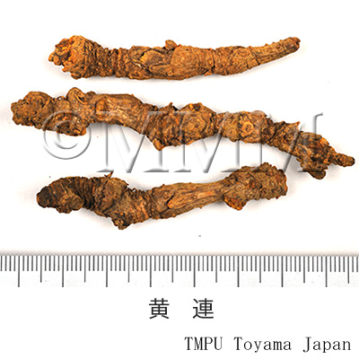 | 選品 | 太くて堅実で,内部が濃黄色を呈し,苦味の強いものが良品.毛黄連はひげ根で苦味が少なく劣品(TN). | ||||||