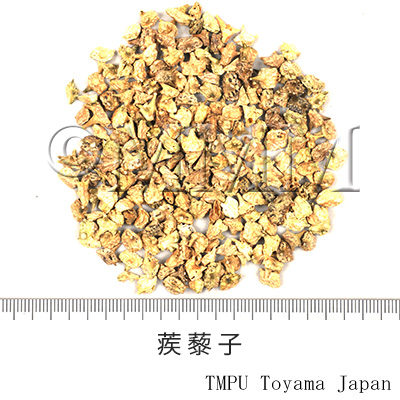 | 備考 | 本草書に収載されている「白蒺藜」はマメ科の Astragalus complanatus R. Br. の種子であり,現在このものは通常「沙苑子」と呼ばれている.山東省の一部の地区では,「硬蒺藜」に対して「軟蒺藜」と称する商品があるが,これはアカザ科の Atriplex sibirica L.(ハマアカザの類)の果実である。 また安徽省亳県に産する潼蒺藜,亳蒺藜と称するものはマメ科/Leguminosaeの Astragalus complanatus, A. chinensis L. f., Swainsona salsula (Pall) Taub., Crotalaria mucronata Desv., 及び A. adsurgens Pall. などの種子である. | |||||