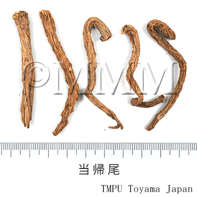 | 選品 | よく肥大し,虫害がなく芳香の良いものを良品とする.馬尾当帰は良品.中国産「当帰頭」は上品質(TN). | ||||||