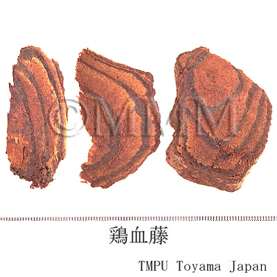 備考広東,広西の一部の地区では,マメ科の Millettia nitida Benth. の茎を鶏血藤,血節藤,血藤,血筋藤などと称する.また江西省の豊城,雲南省鳳慶,四川省などに産する鶏血藤は Millettia dielsiana Harms の茎であり,豊城鶏血藤(江西),貫腸血藤(四川)とも称する.その他鶏血藤と称する商品は非常に種類が多い.