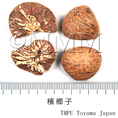 | 備考 | 東南アジア諸国では檳榔子をキンマ葉,石灰などと一緒に咀嚼する(betel chewing)習慣がある.果皮は「大腹皮」と称され薬用とする. | |||||