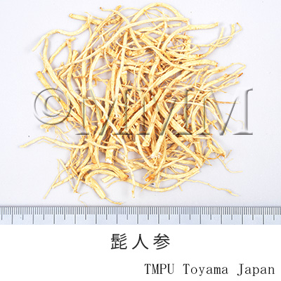 | 薬効 | [性味] 甘、微苦,微温. [帰経] 脾、肺、心、腎経. [効能] 大補元気,復脈固脱,補脾益肺,生津養血,安神益智. [主治] 体虚欲脱,肢冷脉徽,脾虚食少,肺虚喘咳,津傷口渇,内熱消渇,気血虧虚,久病虚贏,驚悸失眠,陽痿宮冷及び心力(機能)衰,心原性ショックに応用. | ||||||