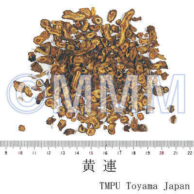 | 選品 | 太くて堅実で,内部が濃黄色を呈し,苦味の強いものが良品.毛黄連はひげ根で苦味が少なく劣品(TN). | ||||||