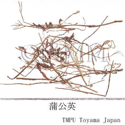 | 備考 | 『中華人民共和国薬典』(2020)には モウコタンポポ Taraxacum mongolicum Hand.-Mazz., シナタンポポ T. borealisinense Kitam. [T. sinicum Kitag. (CP2015)] の全草が規定される. その他基源植物として T. erythropodium Kitag., T. ceratophorum DC., T. pseudo-albidum Kitag., T. pseudo-albidum Kitag. var. lutescens Kitag., T. ohwianum Kitam., T. dissectum Ledeb., T. asiaticum Dahlst., T. cuspidatum Dahlst., T. officinale Weber セイヨウタンポポなどが挙げられる.以上のものは東北,華北で主に用いられる.市販品は多くの混入が認められる.華南地区で蒲公英または土公英と称して用いられるものは,キク科のウスベニニガナ Emilia sonchifolia (L.) DC. および Elephantopus scaber L. の全草である.雲南省ではコウゾリナ属 Picris divaricata Vent. を「蒲公英」と称している. 台湾では Ixeris chinensis (Thunb.) Nakai ウサギソウの全草を蒲公英と称する.また,I. laevigata (Blume) Sch.-Bip. ex Maxim. var. oldhami (Maxim.) Kitam. アツバニガナの全草も同様に用いられる. 韓国産蒲公英は主に T. mongolicum Hand.-Mazz. var. corniculatum Nakai ケイリンタンポポ, T. asiaticum Dahlst. などの全草である.ときに根も蒲公英根と称し出まわる. 日本産は主に T. japonicum Koidz. カンサイタンポポ および T. officinale の根で,「蒲公英根」と称する. | ||||||