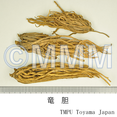 同類生薬ゲンチアナ (Gentiana lutea L. の根茎),秦艽 (Gentiana macrophylla Pall., G. straminea Maxim., G. crassicaulis Duthie ex Burkill or G. dahurica Fisch. の根)