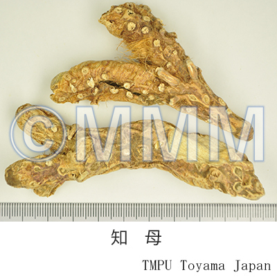 | 成分情報 | ステロイドサポニン及びサポゲニン Steroid saponins & Sapogenins (*C1): Timosaponin A-I, Timosaponin A-II, Timosaponin A-III, Timosaponin A-IV, Timosaponin B-I, Timosaponin B-II, Sarsasapogenin, Markogenin, Neogitogenin キサントン類 Xanthones (*C1): Mangiferin, Isomangiferin アミノ酸 Amino acids (*C1): Pantothenic acid ピリジンアルカロイド Pyridine alkaloids (*C1): Nicotinic acid | |||||
