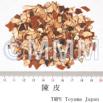 | 選品 | 皮が古いものの方が良品.新鮮品に比しておだやかな芳香がある.六陳の一つである(TN). | |||||