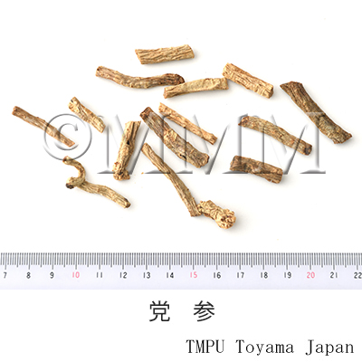 | 原植物名 | Codonopsis pilosula Nannfeldt1 or Codonopsis tangshen Oliver, ヒカゲノツルニンジン1 | ||||||