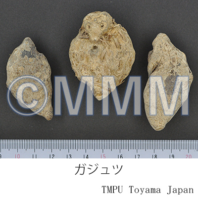 原植物名Curcuma zedoaria Roscoe1, Curcuma wenyujin Y.H. Chen et C.Ling2, Curcuma phaeocaulis Valeton2, Curcuma kwangsiensis S.G.Lee et C.F.Liang2, 日本産: ガジュツ1, 中国産2