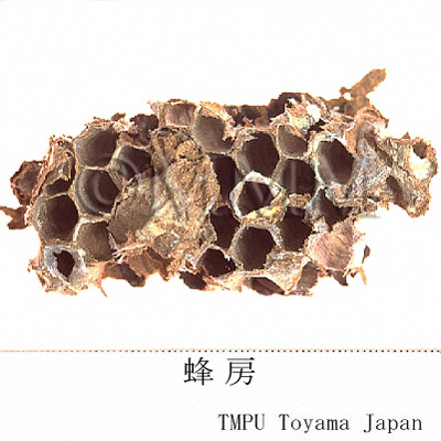 | 備考 | 現在の商品規格には次の3種がある. 1) 胡蜂房: 胡蜂(野蜂)窩で色白く軟質.偏平な形のものが良品とされる.若い巣で大きく,硬質,ラッパ状のもの,または樓蜂房という. 2) 露蜂房: 露天の箇所で採集された蜂房で,質の柔らかいものが最良である.山洞中の蜂房は色黒く,厚く固まり,品質はやや落ちる. 3) 細蜂房: 小さく背面に多数の黄色横紋がある蜂窩.形は長く,房孔は斜め上向き,色白く軟質である.これは良質で,楡樹の上に多い.蜂房の品質を鑑別するには,その品物が乾燥し,色白く,質は綿のように軽く軟らかく,指でつまむと弾力性があり,中に卵,幼虫,蛹その他の雑質物がないものを良品とする.もし,房内に木質物や草質物があり,質が脆く,あるいは房孔の大きなものは不合格品である.貯蔵には乾燥した通気性の良いところを選び,圧力を加えてはならない. | |||||