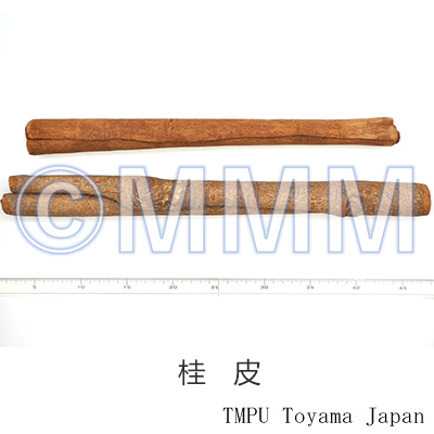「セイロン桂皮」は,C. verum J.S. Presl の幹皮で,Cinnamon Bark と称され,香辛料として世界的に有名である.「タイ桂皮」は,C. iners Reinw. ex Blume,「ジャワ桂皮」は,C. burmanni Blume に由来するものとされる.日本産の「肉桂(にっけい)」と称されるものは C. sieboldii Meissn ニッケイの根皮である.