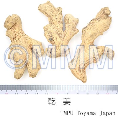 備考古来,漢方処方で用いられる生姜は,いわゆる新鮮なショウガのことで,乾姜は乾燥品である.したがって,漢薬市場の乾燥した生姜(乾生姜とも称す)は,漢方でいう乾姜を指す.では市場の乾姜は何かというと,生姜を蒸乾したもので,修治品(加工品)といえる.一方,現在中国では新鮮なものが生姜で,乾燥品が乾姜である.また修治品として炮姜がある.炮姜は先ずきれいな砂(蛤粉,滑石粉)を鍋に入れ,強火で熱した後,乾燥した皮付き生姜を入れて攪拌し,表面が盛り上がって褐色になったら取出し放冷したものである.