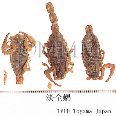 | 備考 | 本動物は中国全土に分布するが,長江以北に特に多く,北京までの華北ではごく普通に見られる種である.強大な毒刺を具えるが,その刺傷は致命的ではない.本品は有毒であるから,用量が多すぎないよう,注意すべきである. | |||||