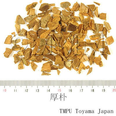 | 備考 | 『日本薬局方』では3種の樹皮が規定され,magnolol を 0.8%以上含むこととされる.『中華人民共和国薬典』では厚朴(Magnoliae Officinalis Cortex)として M. officinalis の樹皮(川朴,湖北厚朴などと称す)と M. officinalis var. biloba(温朴,温州厚朴)の樹皮が規定される.樹皮(幹皮,枝皮)の他,根皮も用いられる.日本市場では中国産の厚朴を唐厚朴と総称する.韓国産はホオノキの樹皮以外に,クスノキ科のタブノキ Machilus thunbergii Sieb. et Zucc. の樹皮を「厚朴(薄朴)」と称し代用にすることがあるが,気味が全く異なる. | |||||
