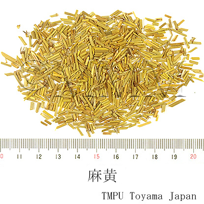 | 薬理作用 | 鎮咳,抗アレルギー作用(水,エタノールエキス),交感神経興奮(血圧上昇,気管支拡張,散瞳,発汗),中枢性鎮咳作用(ephedrine),抗炎症作用(pseudoephedrine). | |||||