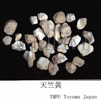 | 備考 | タケ科/Bambusaceae の ハチク Phyllostacys nigra Munro var. henonis Staph,マダケ Phyllostacys bambusoides Sieb. et Zucc. (P. reticulata C. Kock), その他タケ類の茎 (竹桿) の節孔の中に病的に生成した塊状物質を採り出したもの.天然品が最佳であるが,得がたいので,現在では人工的に竹桿を加熱して,竹節中に竹瀝 (竹桿を切って火炙して切口から滴下してくる液汁) を出させ, 自然に凝固したものを採りだし天竹黄と称するが, 品質がまちまちで劣品である. 産地によって雲南竹黄 (上等品は瓦片状を呈し, 一面白色, 一面黒色.次品は不斉塊状: 下等品は粉末状で, 米黄とも称する), 竹黄精 (白色玉質の顆粒で上品である), 西竹黄 (老竹黄, 洋竹黄とも称す. ベトナム, マレー, スマトラなどから産し, 不斉塊粒, 灰白色または透明黄白色, ときに泥塊, 炭塊などが混る), 広竹黄 (土竹黄とも称し,広東,広西に産するもので, 品質には差異がある. 上等品は老竹黄に似, 下等品は泥などが多くて重い) などがある. | |||||
