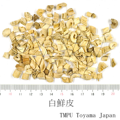 備考北蘚皮とも称する。湖北省嚢陽,京山,江蘇省淮陰,安徽省じょ県などの地区では,根皮でなく根部を薬用にしており,古蘚皮とも称している.新彊省で用いられている白蘚皮は Dictamnus angustifolius G. Don の根皮である.また,陜西,四川,湖南省では,マメ科/ Leguminosae のムレスズメ Caragana chamlagu Lam. の根皮を白蘚皮と称している.その他,河南省で用いられる白蘚皮は,現在のところ原植物不明である.