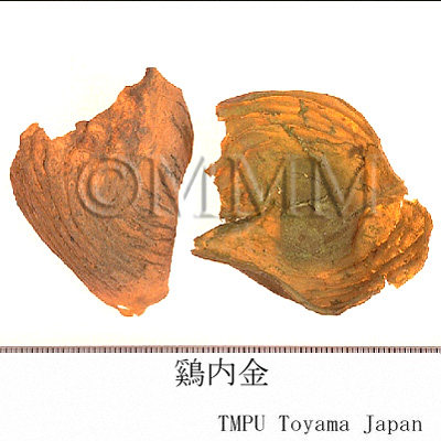 | 一般生薬名 | 鶏内金, Jineijin, Galli Gigerii Endothelium Corneum (CP2020), Galli Stomachichum Corium, Chicken's Gizzard-skin (CP2020) | |||||