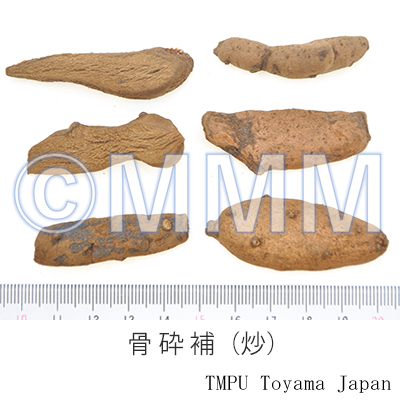 | 備考 | ウラボシ科/Polypodiaceaeの ハカマウラボシ Drynaria fortunei (Kunze) J. Smith の根茎を乾燥したもの(四川省で巴岩姜,吊蘭,屋檐姜,巴毛風,石鶏兒,湖南省や貴州省で爬崖姜,広西省で馬騮姜と称する)が主で,その他 D. sinica Diels (陜西省で猴姜,甘粛省で毛兒姜,駱駝と称する), D. propinqua (Wall.) J. Smith var. mesosoria Christ (四川省で爬岩姜, 石岩姜, 骨砕補と称する), Pseudodrynaria coronans (Wall.) Ching (広西省で骨砕補と称する) などの根茎も用いられる.一般に中国では根茎の鱗片を除去したものを「骨砕補」と称し,鱗片をつけたままのものを「申姜」または「猴姜」と称している. なお, 広西省僮族自治区葯物研究所の方鼎(1962年)は広西省産骨砕補の原植物を調査し, ウラボシ科/Polypodiaceaeの Phymatodes lucida (Roxb.) Ching (広西靖西で猴子姜,骨砕補), シノブ Davallia mariesii Moor., D. austro-sinica Ching, D. formosana Hayata, Drynaria bonii Christ, アリサンデンダ Polypodium amoenum Wall., Colysis elliptica (Thunb.) Ching var. pothifolia (Don) Ching, アリサンオウレンシダ Leucostegia immersa (Wall.) Presl. 広西で骨砕補), Davallia bullata Wall. (広西陸川で骨砕補,砕補), Leucostegia perdurans C. Christ (雲南昆明で骨砕補) を報告している. | |||||