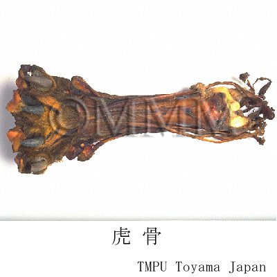 | 備考 | 一般に虎脛骨を重用する.現在トラはその生息数が減少しており,代用として豹骨(金銭豹骨),土豹骨,熊骨などが出まわることがある. | |||||