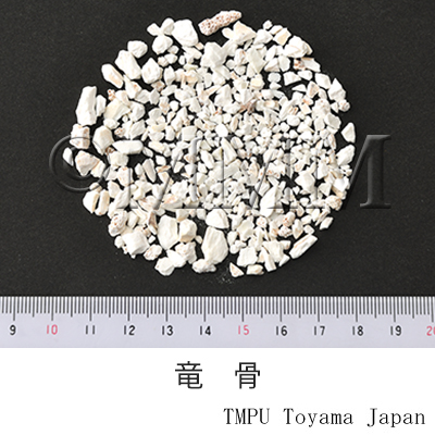 | 備考 | 中国では龍骨を商品上,「花龍骨(五花龍骨)」と「土龍骨」に大別している。 「花龍骨」は華東地区に主産し,表面淡灰白色~淡褐色を帯びた灰色を呈し,灰黒色,褐色,黄色あるいは青色などの斑紋,條紋または松葉紋様の花紋がみられ,質はやや硬いが破砕し易く,容易に崩れて粉末状となる。 「土龍骨」は華北,東北地区に主産し,表面に花紋がなく,断面は中空あるいは多孔質で,質は堅硬で破砕しにくいが,破砕すると小片状となる。「花龍骨」を上品とする。わが国に輸入されているものは主に「土龍骨」である。 | |||