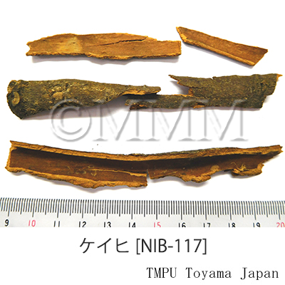 「セイロン桂皮」は,C. verum J.S. Presl の幹皮で,Cinnamon Bark と称され,香辛料として世界的に有名である.「タイ桂皮」は,C. iners Reinw. ex Blume,「ジャワ桂皮」は,C. burmanni Blume に由来するものとされる.日本産の「肉桂(にっけい)」と称されるものは C. sieboldii Meissn ニッケイの根皮である.